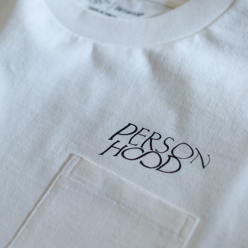 Personhoodとの限定コラボTシャツ。Standard Tシャツ - WHITE with Pocketのボディを使用し、独自のグラフィックをシルクスクリーンでプリントした商品です。胸ポケット上のロゴと背面に大きくプリントしたグラフィックが印象的なデザインです。