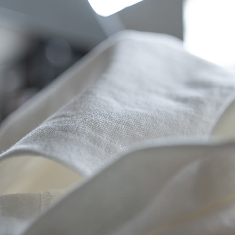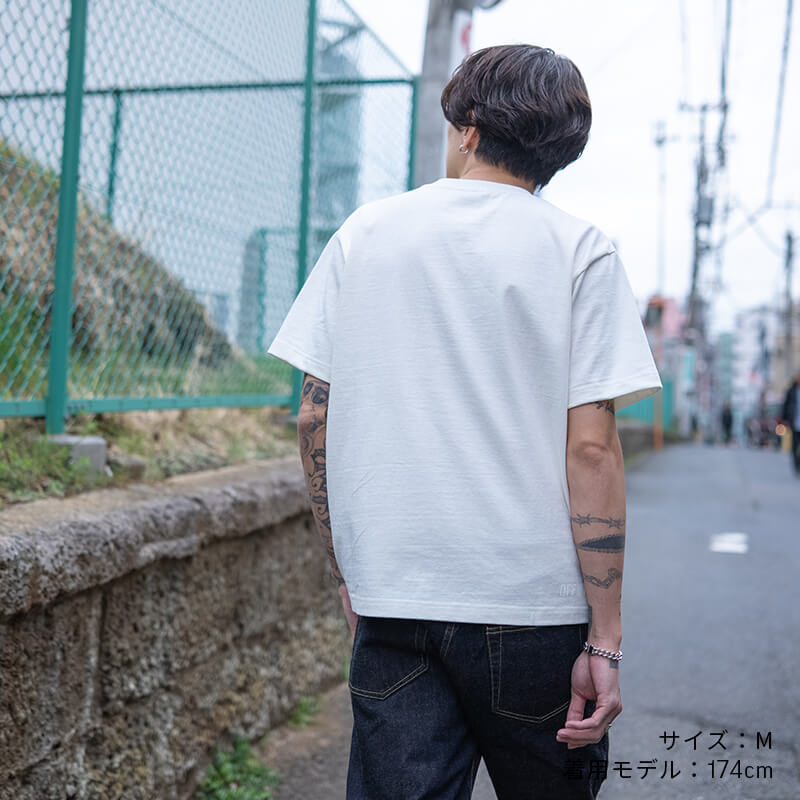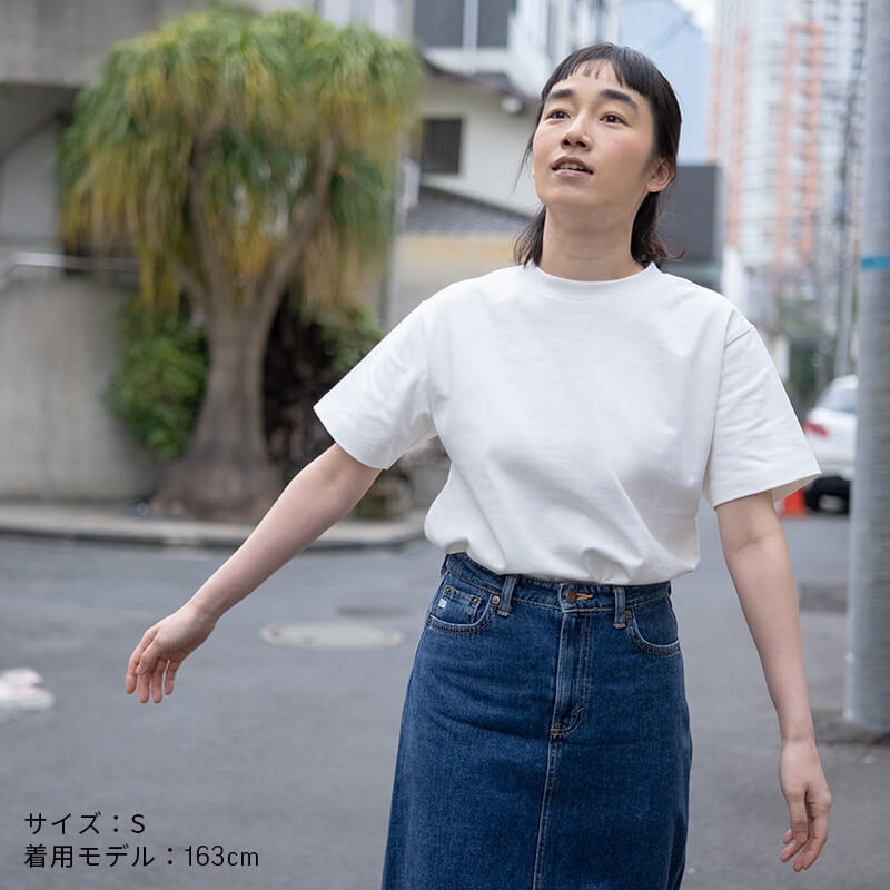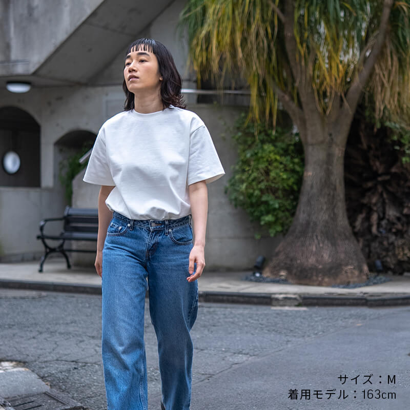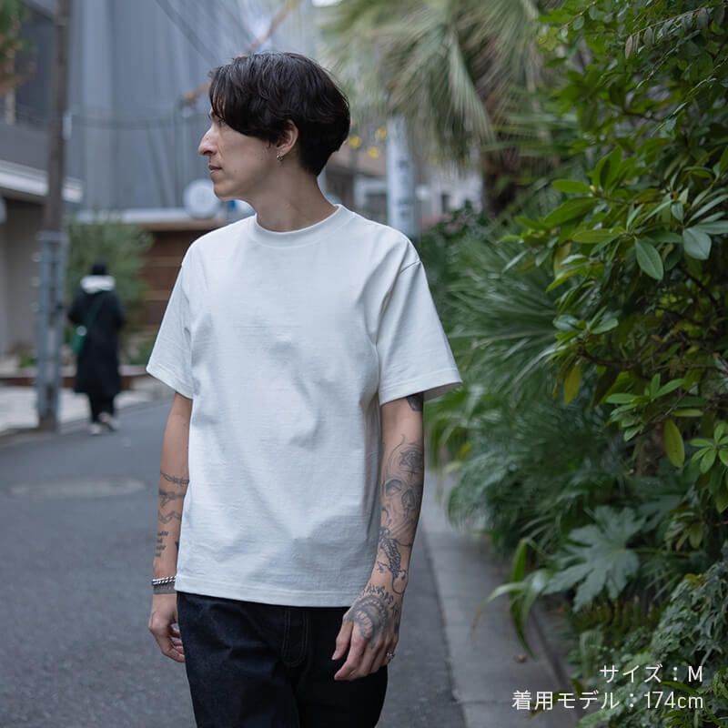 約10ozの生地は、ほどよいハリとやわらかな肌触り。洗濯してもヨレにくく、耐久性にも優れています。また、縫い代が肌に触れない縫製やプリントタグを採用することで着心地の良さを実現しました。
